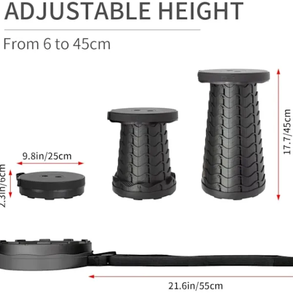 【Höjdjusterbar】 Den infällbara hopfällbara pallen öppnas och låses enkelt i önskad höjd på bara 2 sekunder med en enkel vridning. Den teleskopiska pallen kan vara valfri höjd mellan 6 och 45 cm för att möta behoven i olika användningsscenarier.