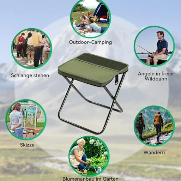 Produktbeskrivning Produktnamn: Fällbar pall Material: Kolstål + Oxfordtyg Färg: Grön Vikt: 0,65 kg Storlek: 26 x 24 x 24 cm Förpackningsinnehåll: 1 Fällbar pall Anmärkningar om den fällbara pallen: Den maximala lastkapaciteten för denna pall är 150 kg. Pallens ben är utrustade med halkskydd för att säkerställa att pallen står stadigt. Obs: 1. På grund av skillnaden mellan olika bildskärmar kanske bilden inte återspeglar objektets faktiska färg. Vi garanterar att stilen är densamma som bilden som visas. För det andra, vänligen notera att dimensionerna kan vara något annorlunda på grund av manuell mätning. Fällbar campingpall: Den fällbara campingpallen har en hopfällbar design, vilket gör att den kan omvandlas till en ryggsäck och bäras diagonalt på kroppen. Den är utrustad med en dubbellagers förvaringsficka för mobiltelefoner. Öppna direkt vid användning. Perfekt för fiske och camping. Högkvalitativa material: Benen på den fällbara campingpallen är gjorda av högkvalitativt kolstål, som tål en lastkapacitet på upp till 150 kg, medan sitsen är gjord av högkvalitativt Oxfordtyg med utmärkt andningsförmåga. Benen är nitade i tygsitsen Bärbar och lätt: Denna fällbara pall är ultralätt, väger endast 850 g och mäter 26 x 12 cm. Du kan fälla ihop den till en ryggsäck, vilket är både bärbart och praktiskt. Du kan också lägga den i din ryggsäck utan att den känns tung. Komfort och andningsförmåga: Campingpallen är 26 cm bredare. För att ge dig komfort. Den bärbara fällbara pallen är gjord av 600D Oxfordtyg, som är slitstarkt, rivtåligt, inte löst, säkert och stabilt och inte hänger ner Bred användning: Den fällbara pallen är lämplig för camping, vandring, picknick, fiske och strandutflykter. Du kan enkelt använda campingpallen i din trädgård eller på din gräsmatta hemma