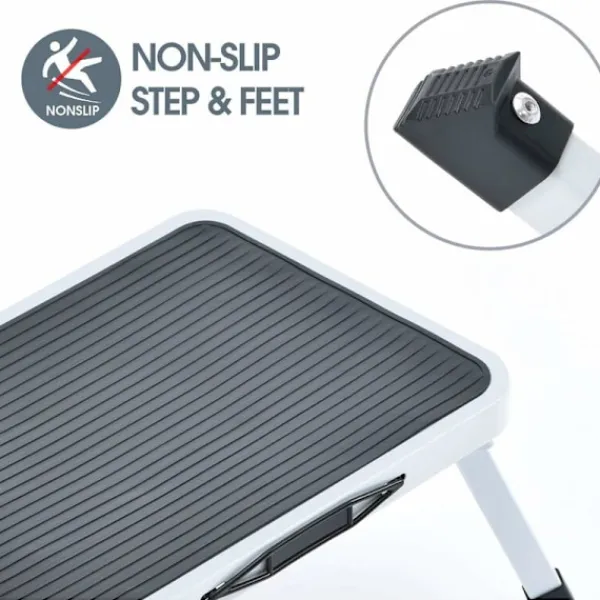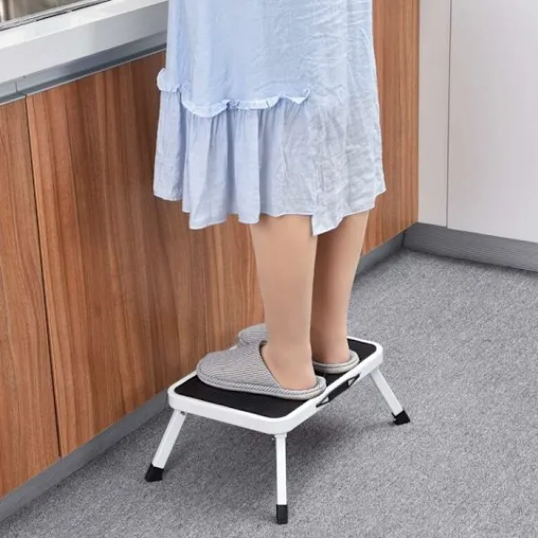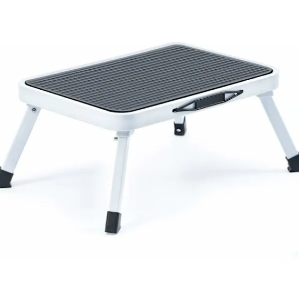 Stabil konstruktion som tål upp till 150 kg. STABIL OCH SÄKER: Steget är tillverkat av slitstarkt stål. De 4 halkfria fötterna håller produkten stadigt så att användaren inte halkar när den står. Bred bas med spår för att förhindra fall. Snäpplåsdesignen säkrar stegpallen när den används. HOPFÄLLBAR OCH PLATSBESPARANDE DESIGN – Ihopfälld är den endast 4 cm bred, tar liten plats och kan enkelt förvaras även i de trångaste utrymmena. LÄTT OCH BÄRBAR: Stegen väger endast 4 pund och har ett praktiskt handtag för enkel transport. Mångsidig: Stegpallen kan användas av barn och vuxna inomhus och utomhus. Den passar för många tillfällen. Låter dig lyfta höga skåp i kök, badrum, sovrum eller använda den som fotpall på kontoret etc. Perfekt för vardagsbruk. Storlek: Öppen storlek: 47 cm lång x 32 cm bred x 17 cm hög, 5 cm hög när den är hopfälld Förpackning: 1 hopfällbar stegpall
