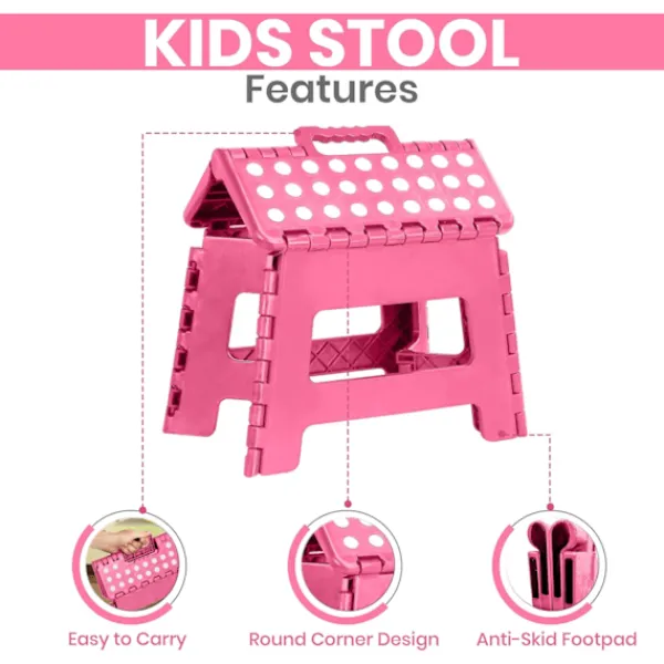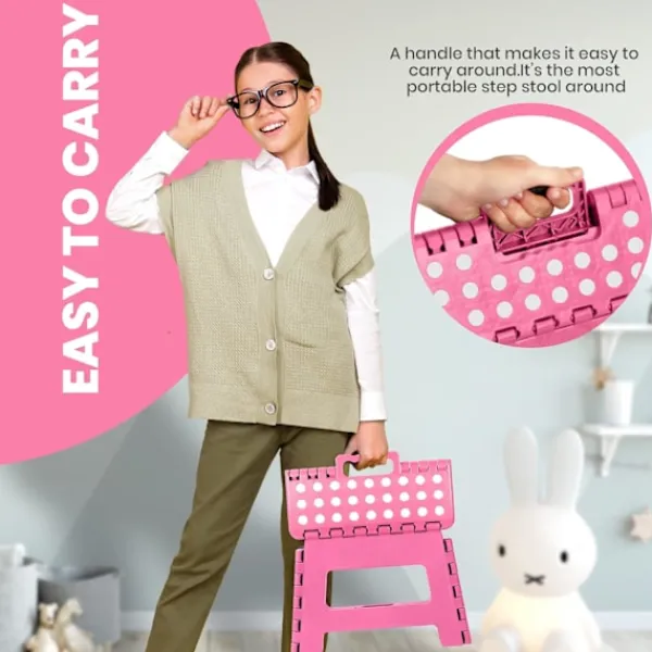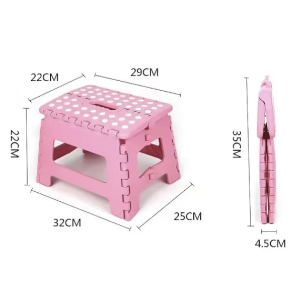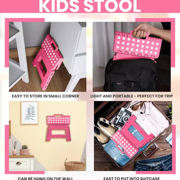 Fällbar pall för barn – Lättviktsplastfällbar pall för kök, badrum och vardagsrum Rosa 29 x 22 x 22 cmFällbar pall för barn – Lättviktsplastfällbar pall för kök, badrum och vardagsrum Rosa 29 x 22 x 22 cmHÅLLBAR OCH RESISTENT – Den starka, hållbara och fällbara pallstegen är designad för barn. Låt dina barn säkert ta en bok från en hög hylla eller hjälpa dig i köket. HALKSÄKRA FÖTTER – För säkerhet är halksäkra gummipunkter placerade på ytan för att säkerställa ett fast grepp och förhindra att den glider när man står på toppen av plastpallen. PLATSSPARANDE OCH ENKEL FÖRVARING – Plastpallen är designad för att spara utrymme när den är hopfälld. Dra helt enkelt i handtaget och tryck på sidorna för att fälla ihop den upprätt. BEKVÄM STÅENDE – Plastpallen ger ditt barn den extra höjden för att hjälpa dem att nå bänkar, handfat och hyllor. Lätt och bärbar – Plastpallen för barn är idealisk för att bära på språng. Den är lämplig för inomhus- och utomhusplatser som sovrum, sovsalar, kontor, picknick, fester, camping och stränder.