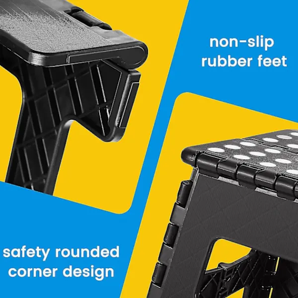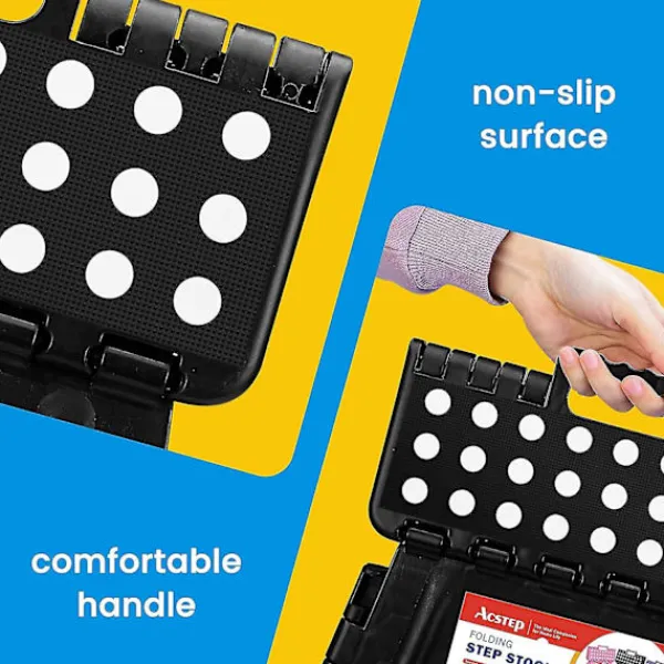 HALKSÄKER – Speciella gummipunkter på ytan och halkfria svarta gummiband på varje fot för maximal fotgrepp och ger fantastisk komfort, förhindrar halkning. Unik, grepp-prickig texturerad yta gör den hopfällbara trappstegen säker för alla. Dessa säkerhetsfunktioner gör trappstegen perfekt för mångsidiga användningsområden, t.ex. kök, badrum, matsal, kontor, trädgård, camping, fiske och mer.
