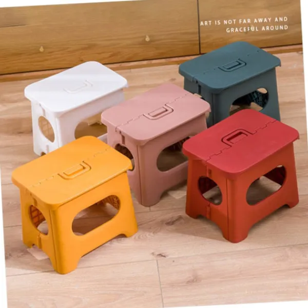 Hopfällbara pallar med bärbart handtag: runda fasningar skadar inte händerna, säkra och praktiska.