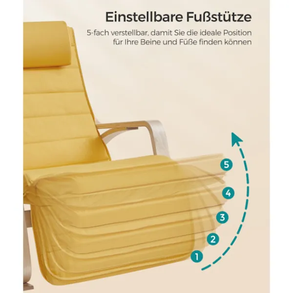 Justerbart fotstöd: Fotstödet på vilstolen är justerbart i 5 lägen. Oavsett om du vill koppla av eller läsa en bok, här kan du hitta en idealisk position