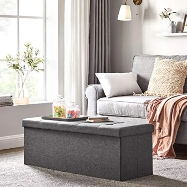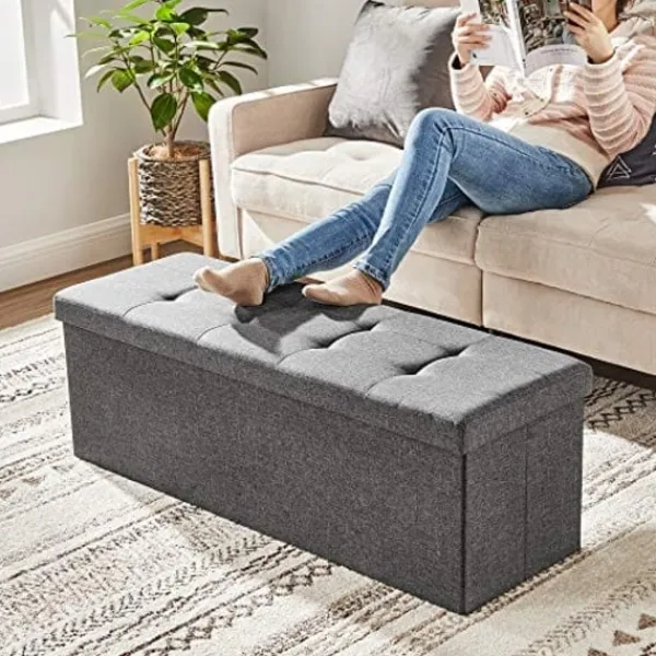 Dold lagringsutrymme: Massor av lagring inuti som praktisk lagringsbox. Rymligt utrymme 150L för att gömma sig röran, håll kläder, leksaker, tidskrifter, filtar, sängkläder perfekt