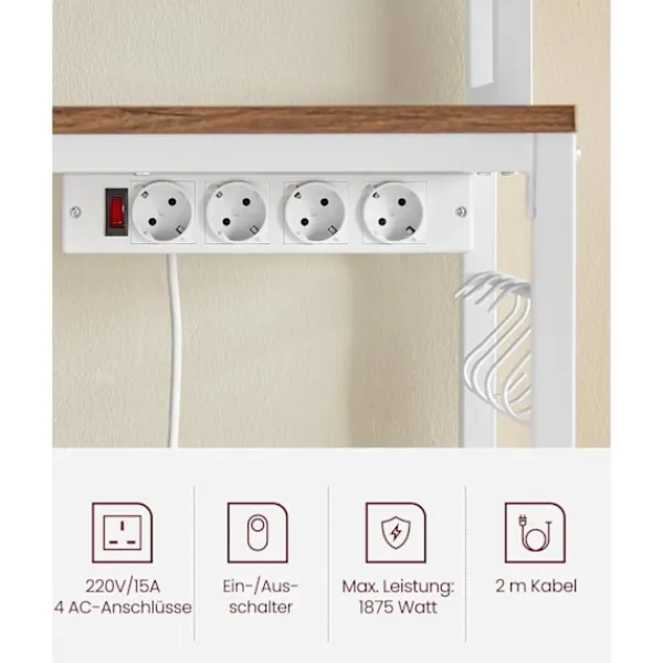 Säker och pålitlig: Den integrerade grenuttaget på denna stående hylla ger överbelastningsskydd, läckageskydd och, eftersom den är utrustad med en på/av-brytare, kan den stängas av när den inte används – allt för säkerhets skull!