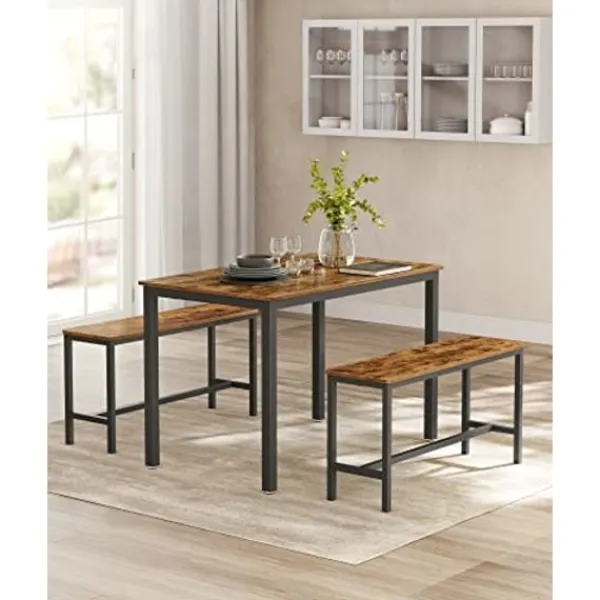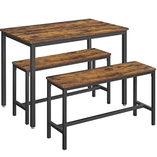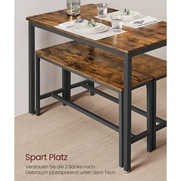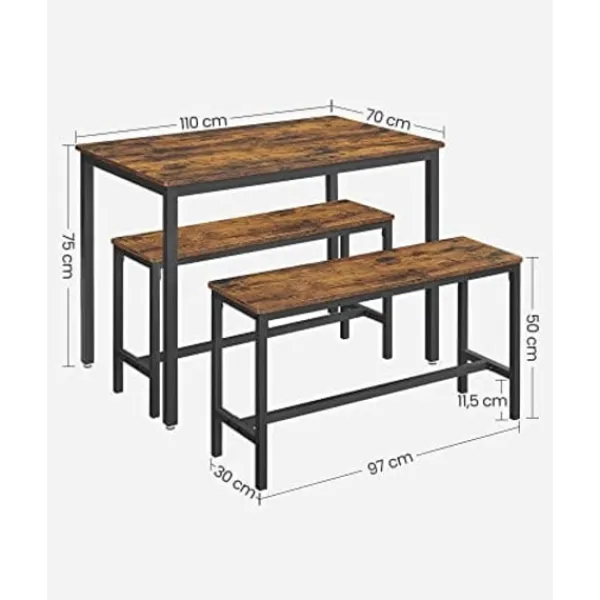 Perfekt passform: De två bänkarna har en höjd av 50 cm och passar perfekt under det 75 cm höga bordet, så uppsättningen hjälper dig att spara utrymme i din matplats. Det finns ingen risk att snubbla över bänkarnas fötter när du förbereder måltider!