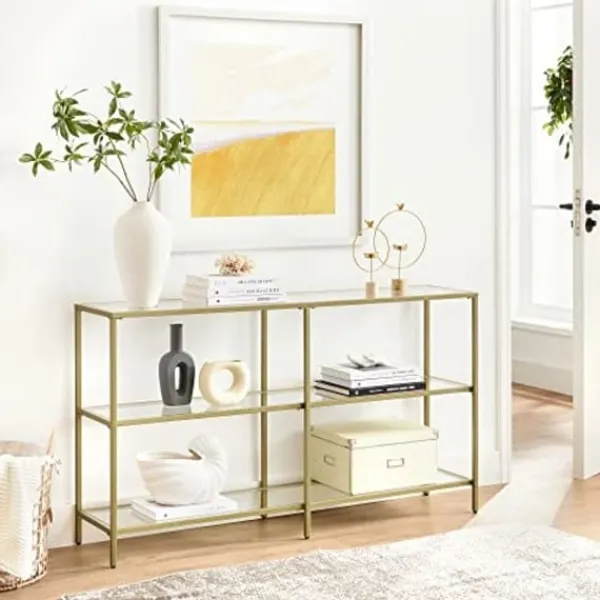Utrymme för framtiden: istället för att tänka ”om det bara var mer rymligt för mina nya prydnadssaker”, varför inte välja ett konsolbord som är rymligt från rätt start? Detta 130 cm långa 3-lags bord är bara biljetten