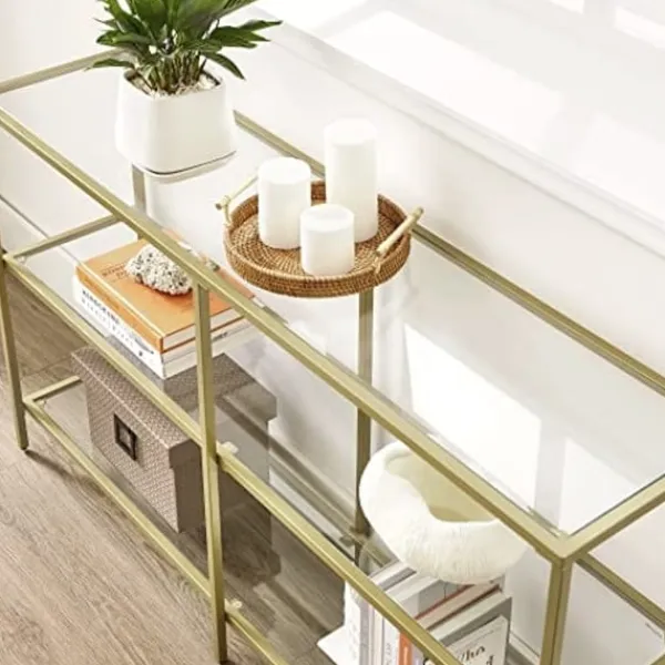 Inget behov av att vara på tenterhooks: Slutligen kan du visa dina samlingar stolt, och det sista du vill ha är ett steg med spunna paneler och svag struktur. Med 6 mm härdat glas och en stabil stålram kommer denna konsolbord att fördriva dina bekymmer