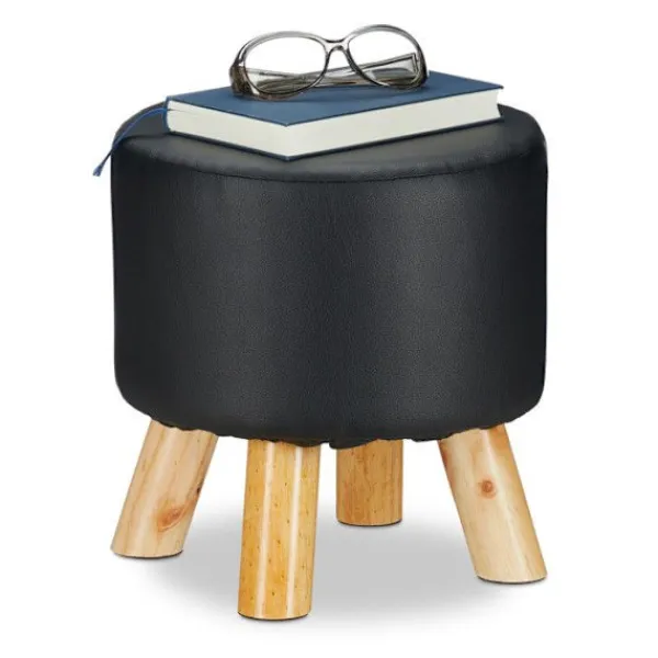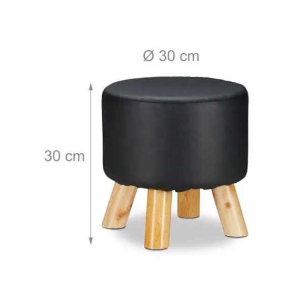 Söker du en stilren pall för ditt vardagsrum eller sovrum? Falla för denna runda puff i konstläder som ser mycket realistisk ut och har 4 ben i furu. Perfekt för både vuxna och barn. De 4 benen är vinklade utåt och ger bra stabilitet. Skyddande fötter förhindrar repor på ditt golv.