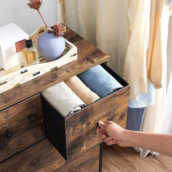 KVALITETSFRÅGOR : Tack vare kombinationen av metallram, tyglådor och MDF kommer vårt förvaringsskåp aldrig att svika dig. Den drar full nytta av de tre materialen för att vara stark, hållbar men ändå lätt