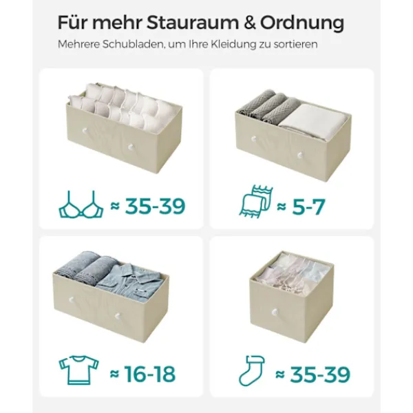 Den kamelgul-krämvita färgpaletten och lådfronterna i tyg ger en touch av sofistikering till alla inredningar. Dess mångsidiga design gör den lämplig för olika rum, inklusive sovrum, vardagsrum eller kontor.