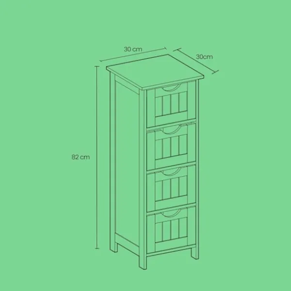 gott om lagring: Fyra rymliga lådor ger utmärkt organisation för ditt badrum eller nyttoföremål.