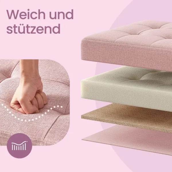 Introduktion av Rootz multifunktionella sittkista, utformad för att kombinera stil och användbarhet. Med sitt pastellrosa tyg och den robusta MDF -strukturen erbjuder detta säte 131 liter lagringsutrymme. Perfekt för sovrum, vardagsrum eller entréer, det stöder bekvämt upp till 300 kg, vilket gör det idealiskt för alla utrymmen.