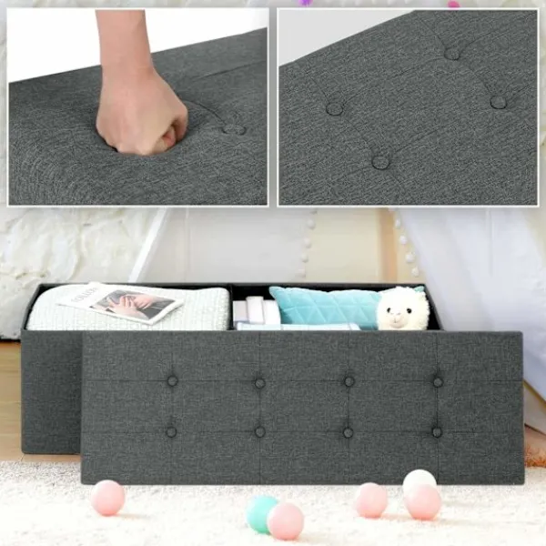 Upptäck den ultimata blandningen av funktionalitet och stil med Rootz Upholstered Foldable Storage Bench. Perfekt för alla rum, den här bänken erbjuder gott om förvaring, komfort och en elegant design som kompletterar alla inredningar.