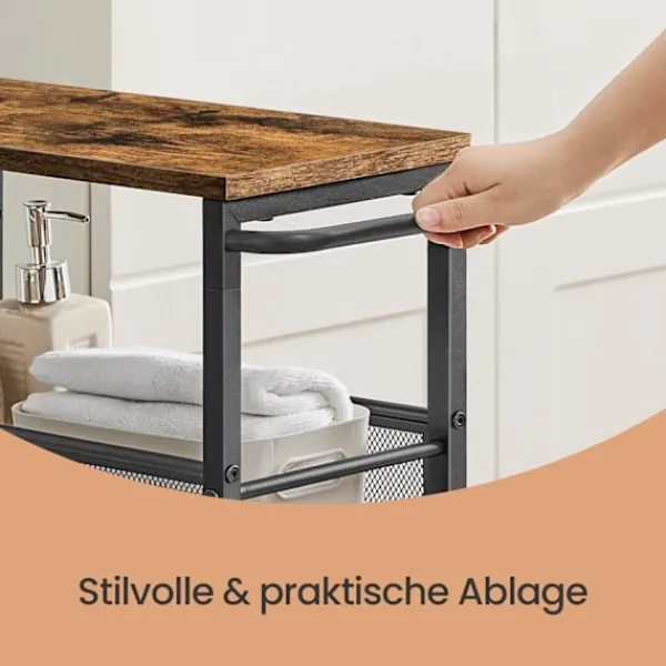 Rootz -trolley är ett viktigt tillskott till alla kök, med fyra rymliga nivåer och en elegant nischhylla. Tillverkad från slitstarka träflisar och stål rymmer det lätt upp till 20 kg. Dess vintage brun och svart design erbjuder inte bara funktionalitet utan förbättrar också din köksdekor.