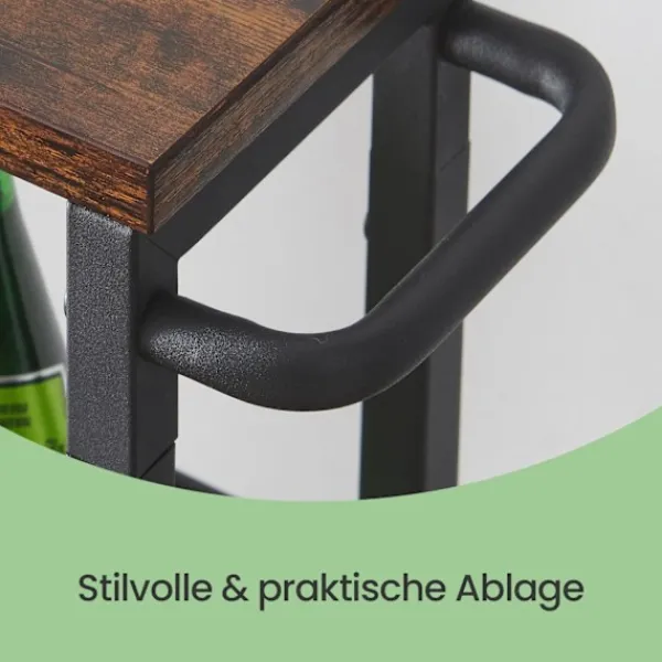 Rootz -rullande bilen är en elegant och praktisk kökslösning perfekt för alla hem. Med sin snygga vintage bruna svarta finish kombinerar den funktionalitet och estetik för att tillgodose dina lagringsbehov. Tillverkad av robust träflisbräda och stål har denna smala vagn fyra nivåer för mångsidiga lagringsalternativ samtidigt som en total statisk belastningskapacitet på 20 kg.