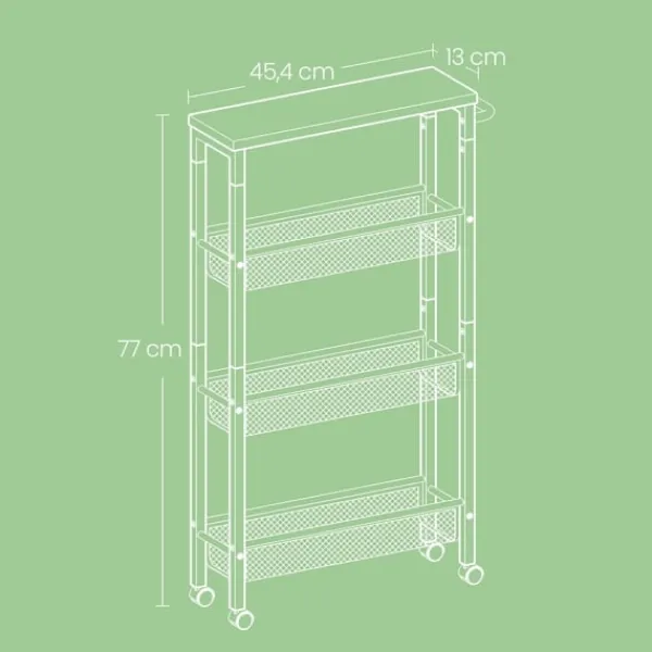 rymdbesparande design: Perfekt för små utrymmen, passar lätt i smala områden samtidigt som du erbjuder fyra hyllor.