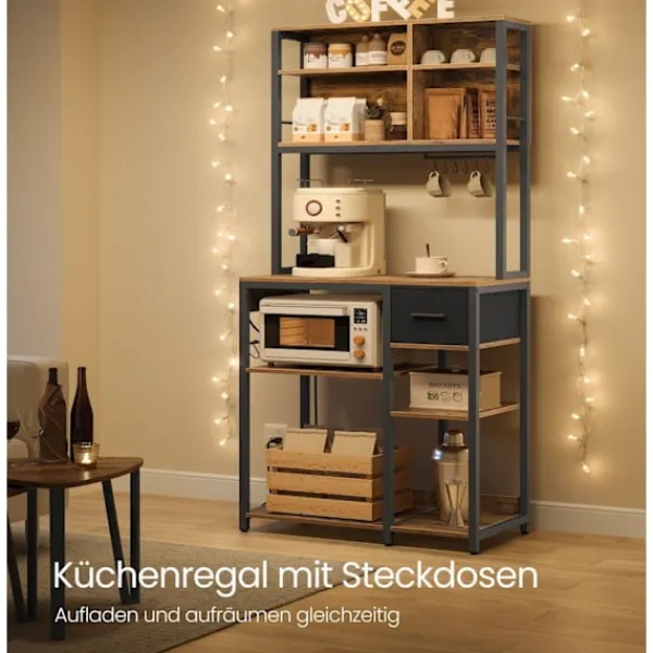 Rotz -kökshyllan kombinerar elegans och praktik med sin bruna svarta finish och hållbara material. Genom att mäta 40 x 80 x 180,4 cm erbjuder det gott om utrymme för lagring samtidigt som den stöder en robust 150 kg totalvikt. Med sin moderna design är denna hylla perfekt för hem som söker både stil och funktion i kök eller matplatser.