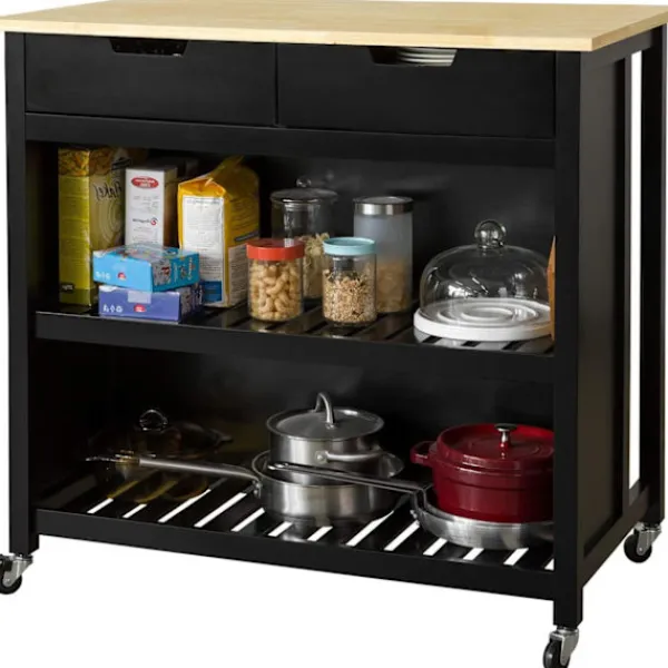 - Denna köksvagn med 2 lådor och 2 hyllor erbjuder gott om förvaringsutrymme för dig. 4 svängbara hjul (2 med broms) för enkel förflyttning.