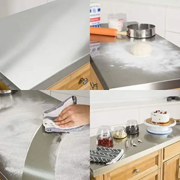 - Den har en bänkskiva i rostfritt stål, 4 lådor, 1 skåp med invändig justerbar hylla, 1 handdukshängare och 4 hjul (2 med broms).