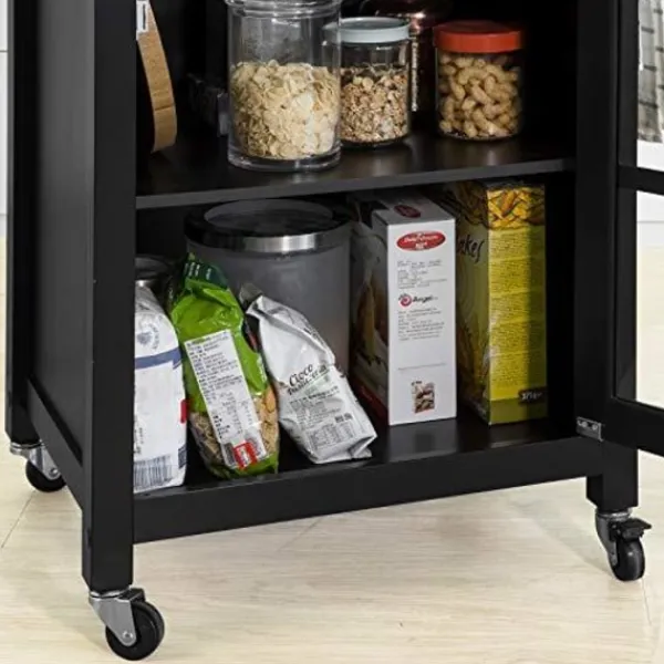 - Köksvagnen har en låda, ett skåp med invändig justerbar hylla och en handdukstork.