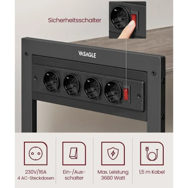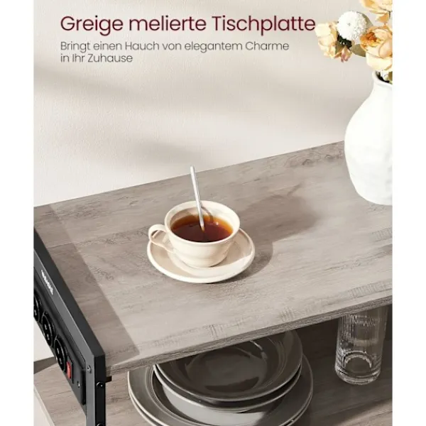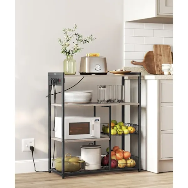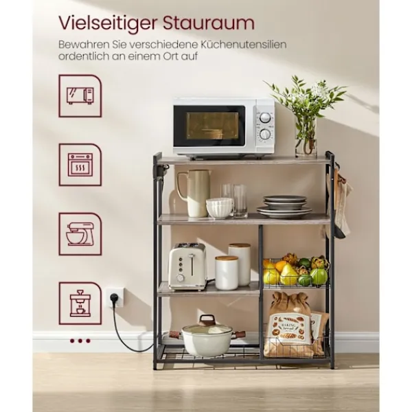 Uppgradera ditt kök med The Rootz Kitchen Shelf med uttag i en stilig greige melerad svart yta. Perfekt för att organisera dina matlagningssaker och samtidigt ge bekväm åtkomst till eluttag.