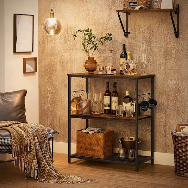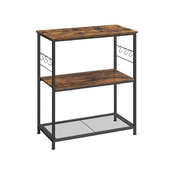 Ge ditt kök en touch av industriell charm med denna mångsidiga hylla med krokar för extra funktionalitet.