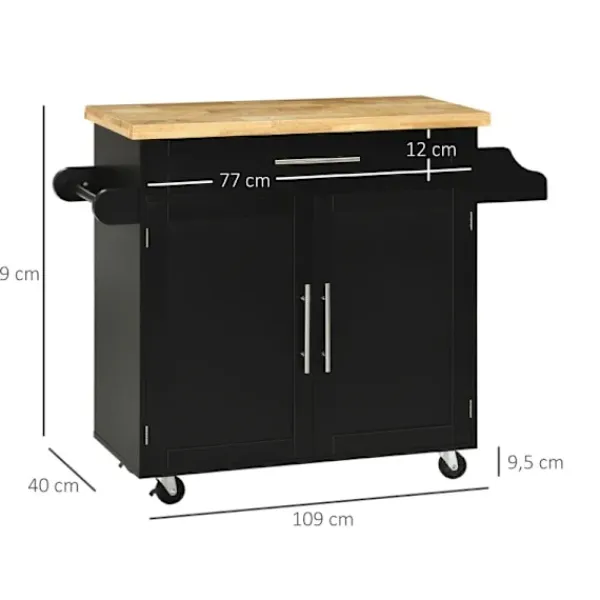 HÅLLBAR MATERIAL: Bänkskivan för köksvagnen är gjord av vattentätt gummi och MDF-trä, vilket gör den hållbar och lätt att rengöra