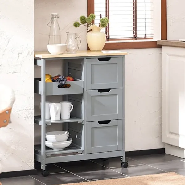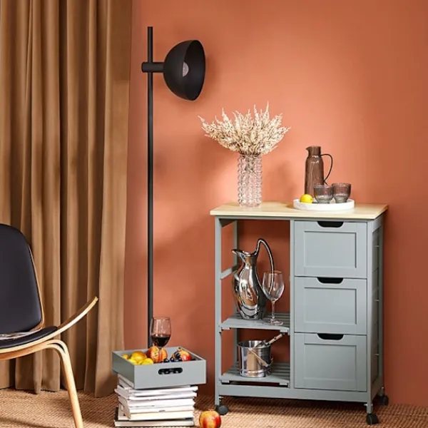 Utrustad med tre stora lådor och tre avtagbara hyllor ger den här vagnen generöst utrymme för att förvara redskap, köksartiklar och mer, och håller allt organiserat och tillgängligt.