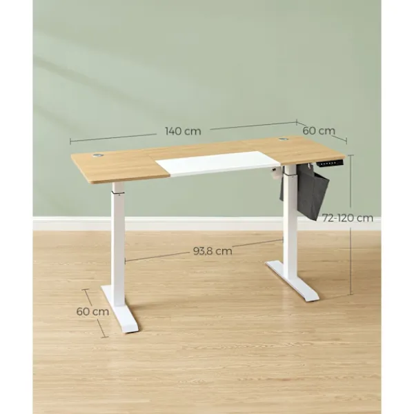 Med måtten 60 x 140 cm ger detta skrivbord gott om plats för din dator, dokument och kontorsmaterial. Integrerade förvaringslösningar och krokar håller din arbetsyta snygg och organiserad.
