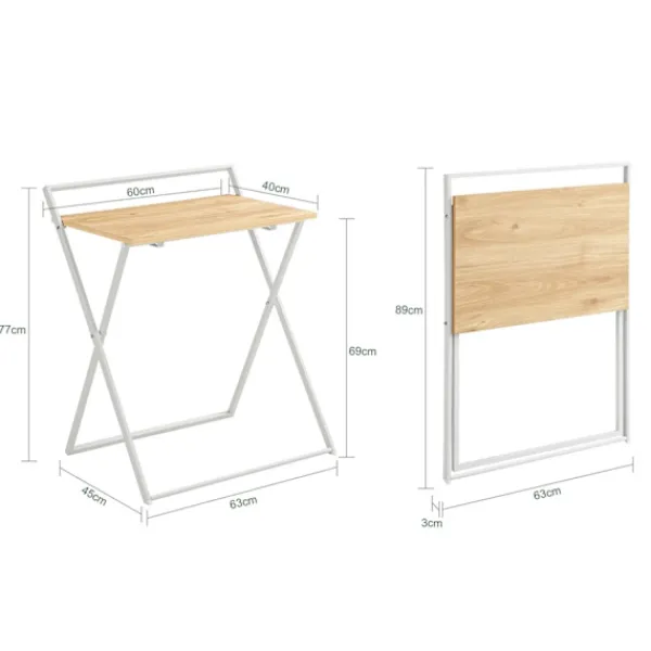 - Ovikta mått: B63 x D45 x H77cm. Skrivbordshöjd: 69 cm. Vikta mått: B63 x D3 x H89cm.