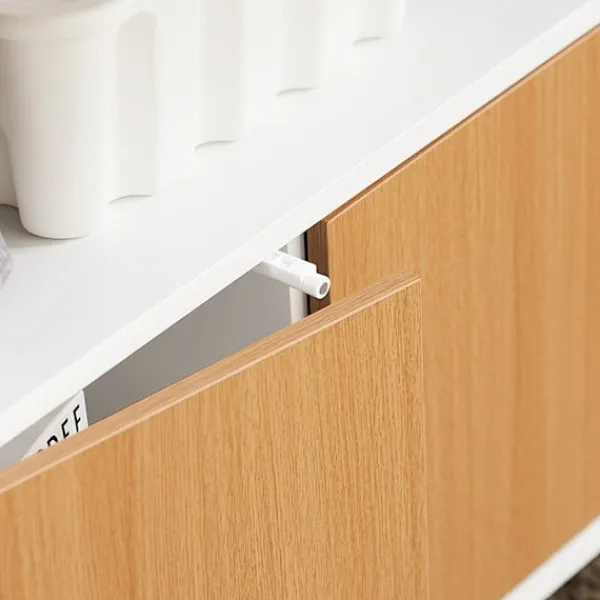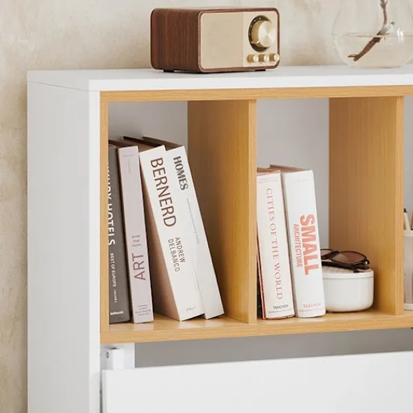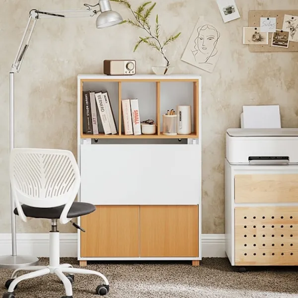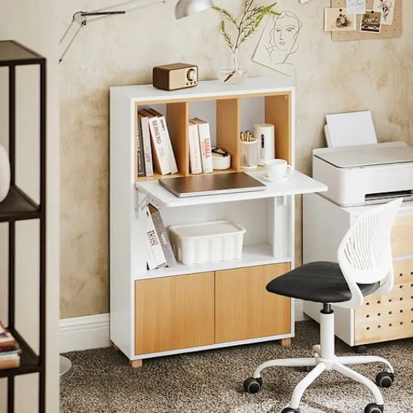 Detta multifunktionella skrivbord kan användas som en hylla i det utökade tillståndet som en bärbar dator skrivbord eller i ett vikat skick. Med 4 hyllor för bättre arrangemang erbjuder det gott om lagringsutrymme för böcker, fotoramar och mer. Skrivbordet rymmer ofta använda dokument och böcker bakom två dörrar och säkerställer säkerhet med en praktisk låsdesign.