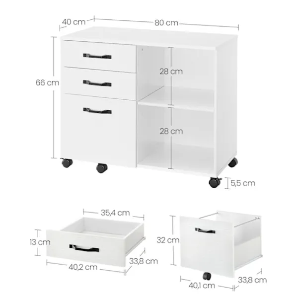 Med dimensioner som är perfekta för att stoppa in under skrivbord eller i hörn, maximerar den utrymmeseffektiviteten samtidigt som den ger gott om förvaring för dina kontorsmaterial.