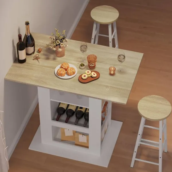 upplevelse mångsidighet med Rootz Bart -tabellen, med praktiska lagringslösningar och elegant design. Med 105×68 cm ytdimensioner inkluderar den 2 glashållare, 3 förvaringsfack och flera sidhyllor. Tillverkad från robust E1-trägratskap är det slitsträckt och lätt att underhålla. Höj din inredning med sin moderna utseende, vare sig det är i ett vardagsrum, kök eller barinställning.
