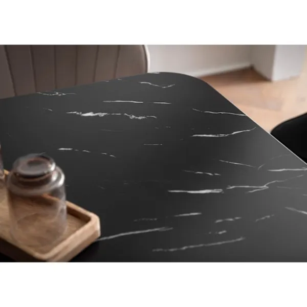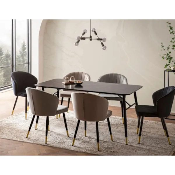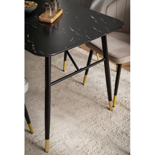 höj din matplats med rootz lilla matbord med en rektangulär topp och harmonisk färgschema för marmor. Detta bord är lämpligt för upp till sex personer och har robusta metallben för stabilitet och en lyxig marmorfinish.