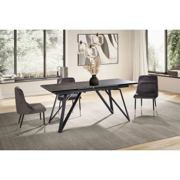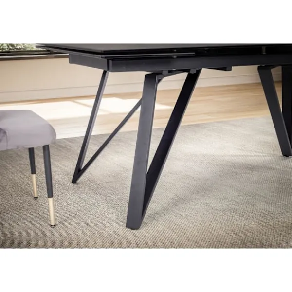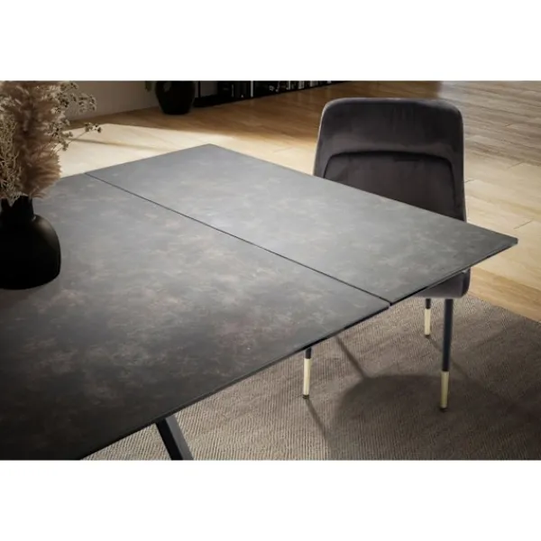 höj din matplats med Rootz stora moderna matsalsbord med en livlig rektangulär bordsskiva med V-form metallben.
