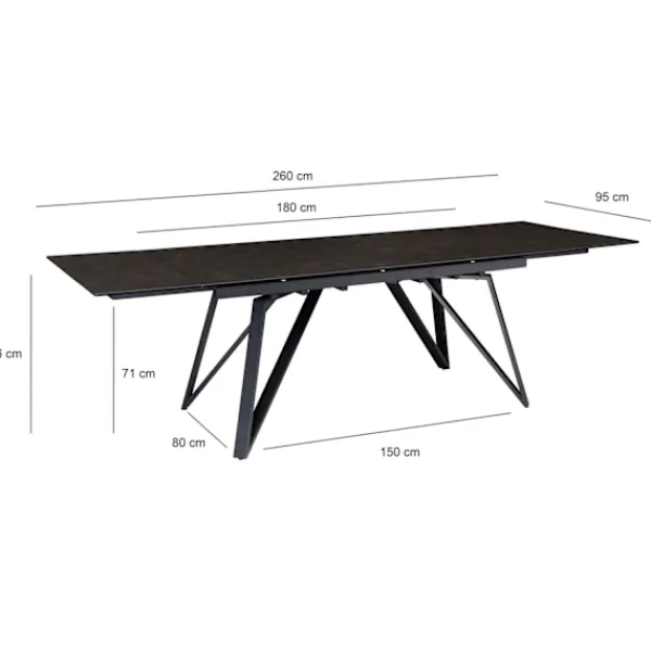 - dimensioner: Bredd: 180 – 260 cm, djup: 95 cm, höjd: 76 cm, bordsskivans tjocklek: ca. 1.1 cm