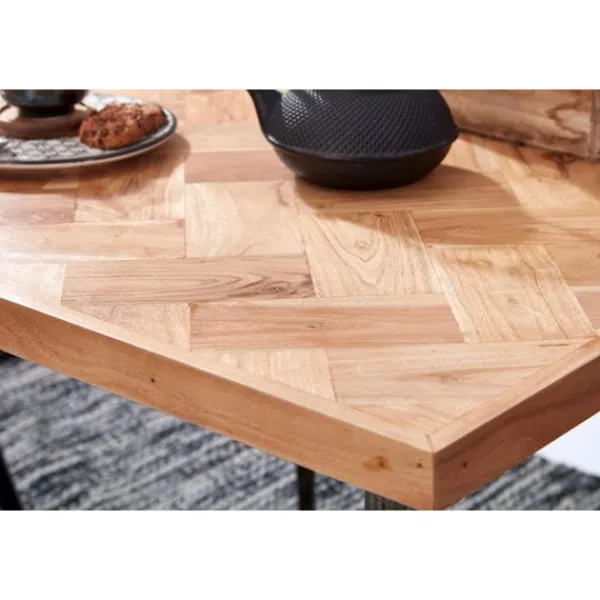 - Vackert fiskbensmönster pryder den dekorativa bordsskivan