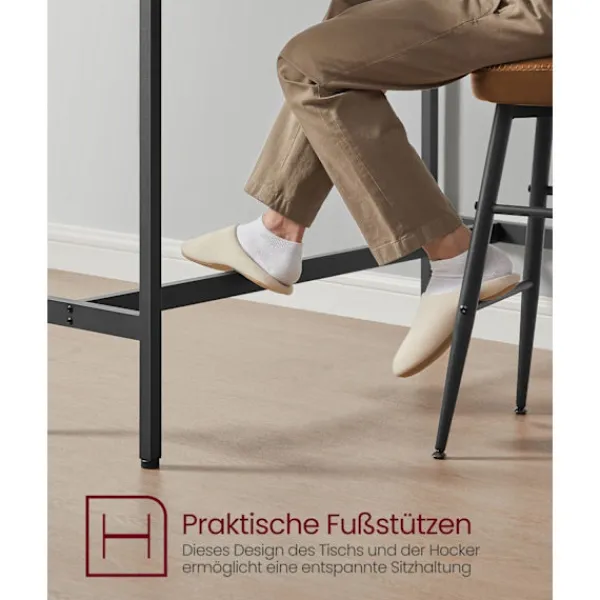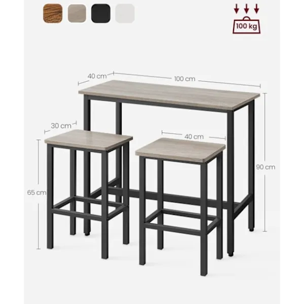 Konstruerad av högkvalitativ spånskiva och förstärkt med stål, detta barbordsset är byggt för att hålla. Den klarar upp till 100 kg per pall, vilket säkerställer stabilitet och stöd.