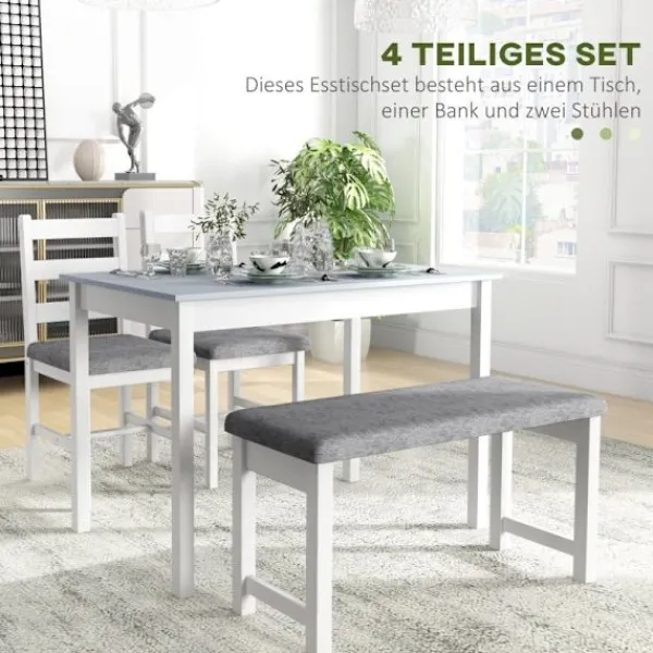 Utrymmesbesparande design: 2 stolar och 1 bänk kan skjutas in under bordet för att spara utrymme och få ditt rum att se större och mer organiserat ut.