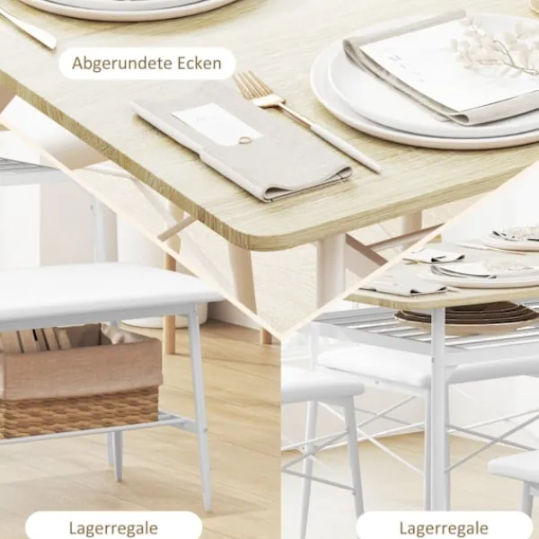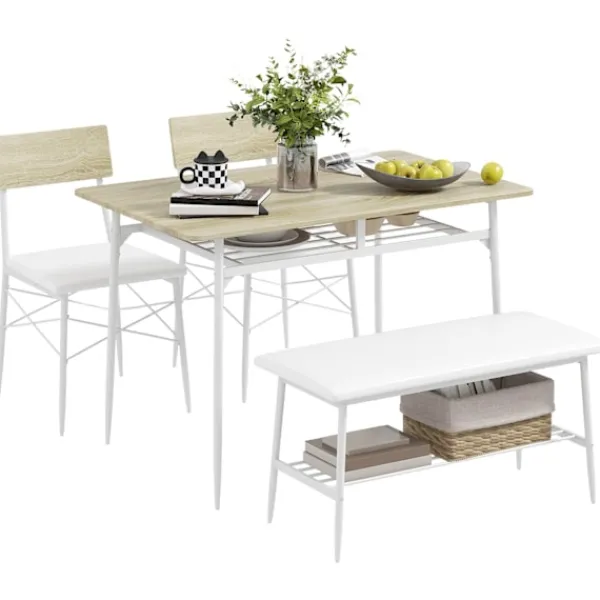 Innehåller ett matbord med 2 stolar och en bänk: Komplett matuppsättning för 4 personer för mångsidig användning
