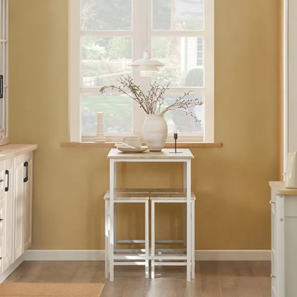 De rena linjerna och moderna siluetten hos detta bistrobordsset gör det till ett perfekt komplement till alla kök, matsalar eller barer. Dess minimalistiska design kompletterar alla inredningstema från modernt till rustikt.