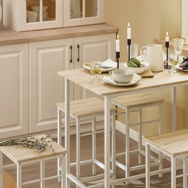 Förbättra ditt hem med Rootz 5-delade barbordsset, designat för att smälta in sömlöst i alla inredningar. Detta mångsidiga set är idealiskt för små utrymmen och erbjuder både funktionalitet och ett elegant, modernt utseende.