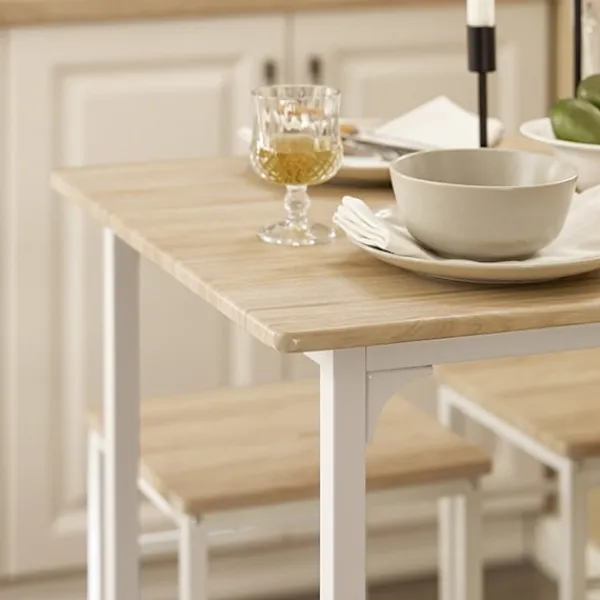 Med en robust metallram och en bordsskiva tillsammans med säten gjorda av högkvalitativ MDF (E1) fanerad, är detta matset byggt för att hålla och motstå dagligt bruk, vilket säkerställer stabilitet och hållbarhet.