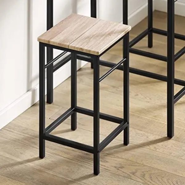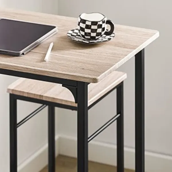 Detaljer: 3 stycken Bar Set – ett barbord och två pallar – är det perfekta tillskottet till alla familjehem. Modern design, stark metallram, stabil struktur. Tillverkad av högkvalitativ MDF belagd med PVC och svart pulverlackerad stålram. En utmärkt lösning för köket, vardagsrummet och baren etc. Detta utrymmesbesparande matset är praktiskt och modernt och ger en funktionell och avkopplande plats att äta och dricka med vänner och familj. Produktinformation Material: MDF, metall. Bordsmått: L80 x B50 x H87cm. Pall Mått: L32 x B32 x H57cm. Setets vikt: 16,6 kg. Lastkapacitet: Bord: 60kg. Pall: 120 kg. Varan kommer i en platt förpackning och kräver självmontering. Detaljerade instruktioner medföljer. De dekorativa elementen ingår inte i leveransen. Vänligen kontakta oss via e-post när du har några frågor, vi svarar så snart som möjligt!