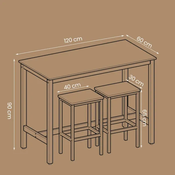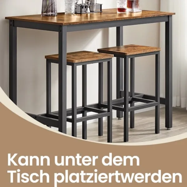 Förbättra din matplats med Rootz Bar Set, en blandning av vintage elegans och industriell stil. Den här uppsättningen har ett träflisskivbord och matchande järnrampallar, vilket säkerställer hållbarhet och stil. Perfekt för mysiga sammankomster eller avslappnad mat, dess kompakta design sparar utrymme utan att kompromissa med verktyget. Enkel montering med inkluderade instruktioner innebär att du kommer att njuta av dess charmiga överklagande på några minuter.