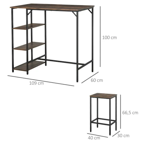 – Totala mått: 109L x 60W x 100H cm (barbord), 40W x 30D x 66,5H cm (barstol)