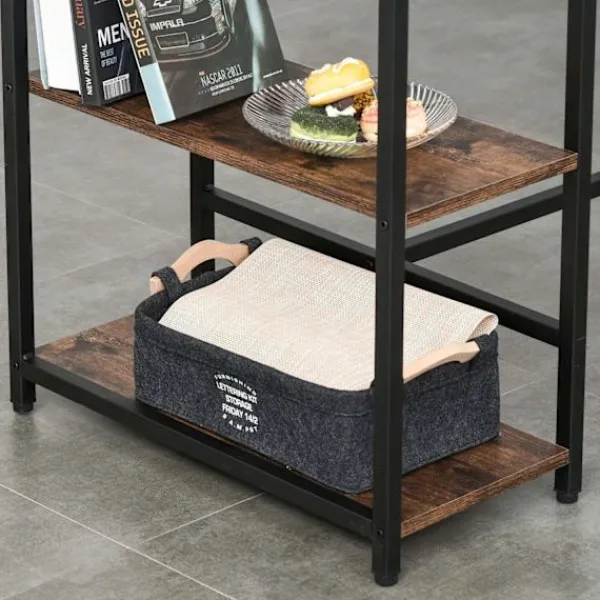 - Den tvåfärgade konstruktionen av rustikt trä och mörk metall kompletterar de flesta inredningsstilar