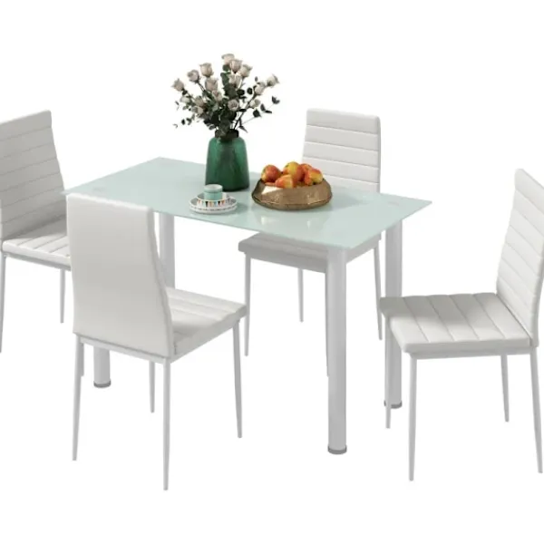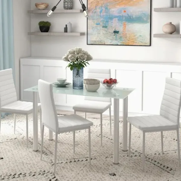 Förvandla även det minsta rummet till en mysig matsal. Ät bekvämt med familj och vänner vid detta matbord med 4 stolar från Rootz. Den robusta stålramen är extremt hållbar, medan det eleganta konstläderöverdraget är särskilt lätt att rengöra. För att få rummet att se större ut och få mer användbart utrymme, tryck in stolarna under bordet. Ta med köksbordet in i ditt hem och njut av dina måltider till fullo.