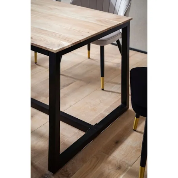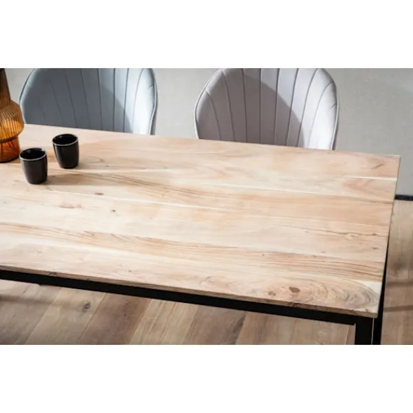 höj din matsal med matbordet Rootz Modern Loft Style med en naturlig träkorns topp och en elegant black metal -ram för en slående kontrast.